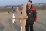 Model sme zalietali 13.4.2002 na letisku medzi Rozhanovcami a Hrašovíkom. Testovací pilot bol Ľubo. Model váži 1.15 kg. Ťažisko je cca 8,5 cm od nábežnej hrany krídla. Motor bol stranovo vyosený +2