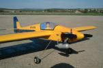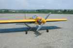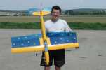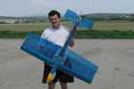 a inštaláciu elektroniky som úspešne dokončil. 4.5.2003 nastal deň “D”.Zalietavajúci pilot, ako ináč Ľubo Macicha. Motor bol nový, takže som na zemi cez neho prehnal dva nádrže. Naladili sme motor a šup s nim do vzduchu. Model sa choval bezproblémovo. Po niekoľko dych-vyrážajúcich manévroch Ľubo pristál a dal mi rádio zo slovami: “môžeš lietať”. Zo začiatku som mal obavy, ktoré sa po štarte rozplynuli. Model lieta skutočne SUPER!