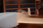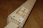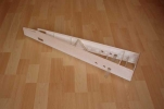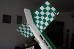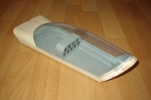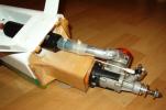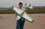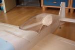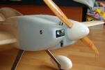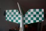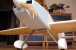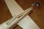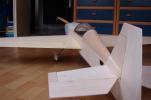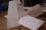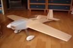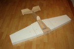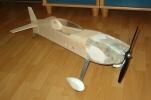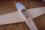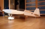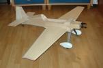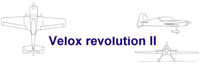 el som Velox revolution II. Plán nájdete v sekcii súbory na stiahnutie. Na internete sa mi podarilo nájsť aj plán, ktorého autorom je Néstor Charriere. Pôvodne je to plán modelu o rozpätí 1905 mm. Ja som si stanovil rozpätie na 1300 mm a motor o kubatúre 7,5 ccm. Keď som plán vytlačil v príslušnej mierke, zistil som, že smerovka a výškovka je podľa mňa malá a naopak, že krídielka sú veľké. Celkovo sa mi plán nepozdával a tak som sa rozhodol, že ho použijem iba ako predlohu. Zmenil som aj konštrukciu. Krídla sú delené, na duralovej trubke o priemere 18 mm. Jadro je vyrezané z polystyrénu, potiahnuté dýhou. Krídla som rozdelil pretože som použil motor s bočným ladeným tlmičom, ktorý je uložený v trupe aby bol model areodynamicky čistí. Vývod tlmiča je vyvedený čo najviac do zadu aby sa model čo najmenej znečisťoval výfukovými plynmi. Trup je celobalzovej konštrukcie.Krídlo: